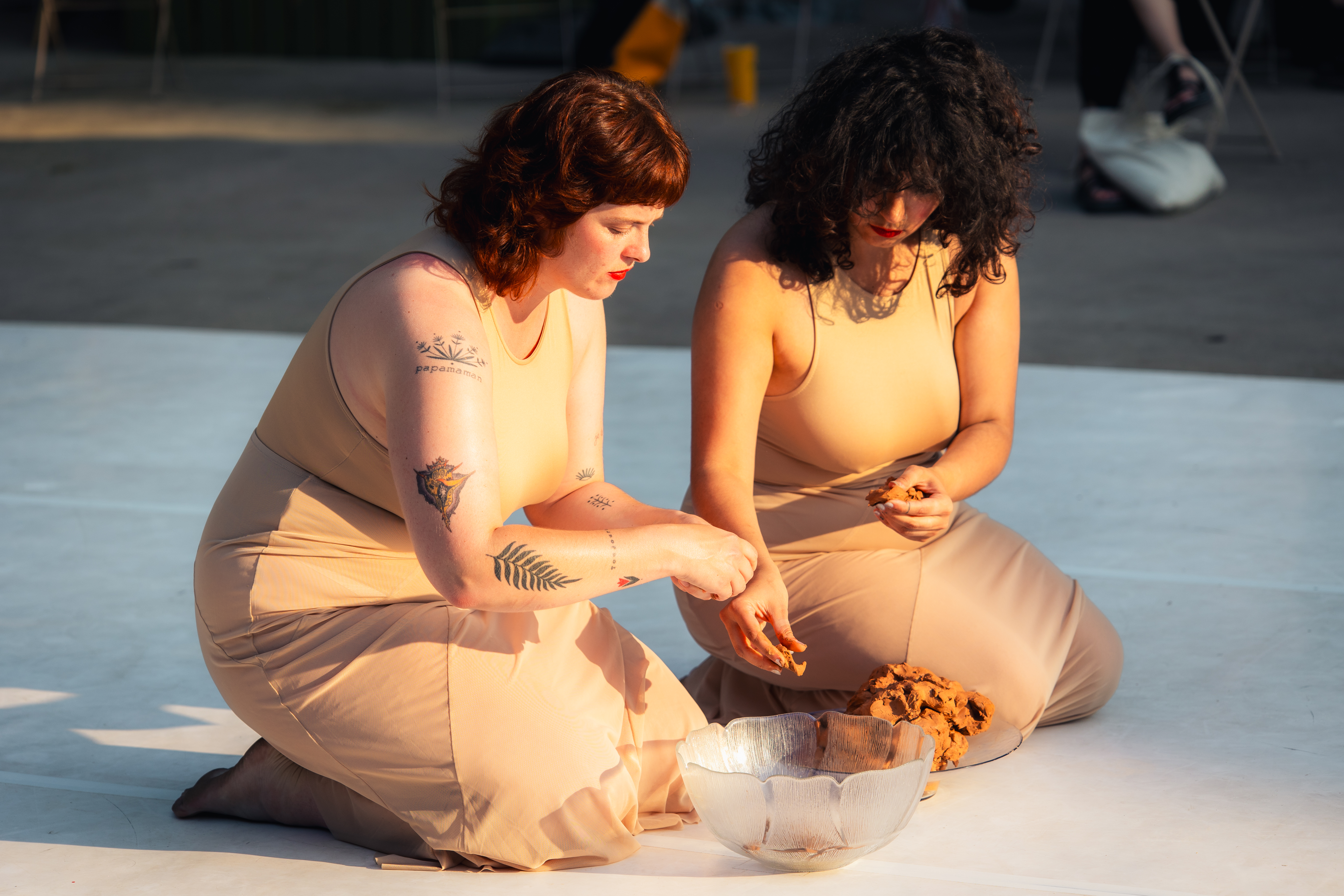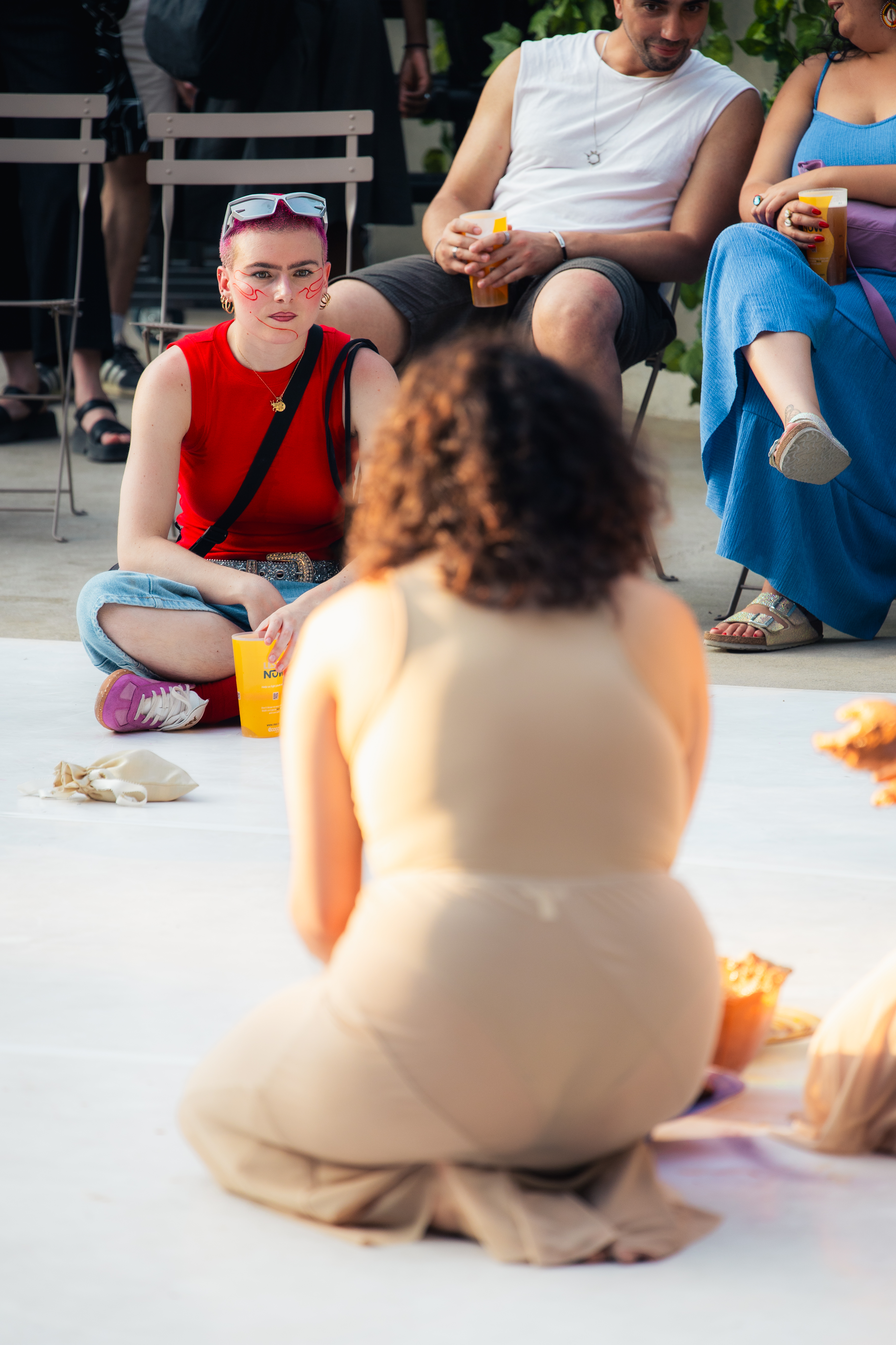Deux corps, deux peaux, un rituel. Blessures, soins, frôlements. Peut-on guérir d’un toucher imposé ? Peut-il devenir baume, remède ? Cette performance explore l’impact du geste sur le corps de l’autre. À travers un passage lent, intime, les artistes interrogent la mémoire du contact, sa matérialité, sa capacité à transformer. Le toucher, ici, devient langage : fragile, puissant, réparateur. Une tentative de faire devenir nos peaux.